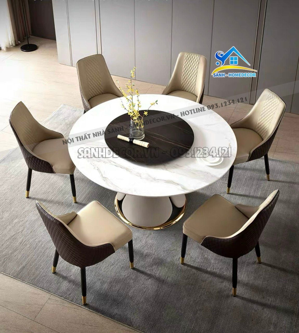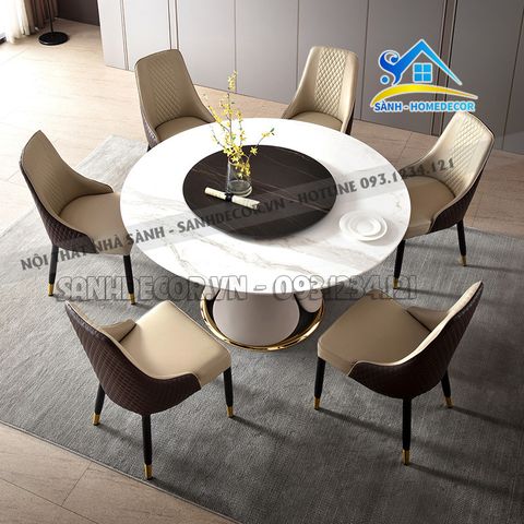 Bàn Ăn Tròn Mặt Đá Phiến Ceramic 6 Ghế - Ba84