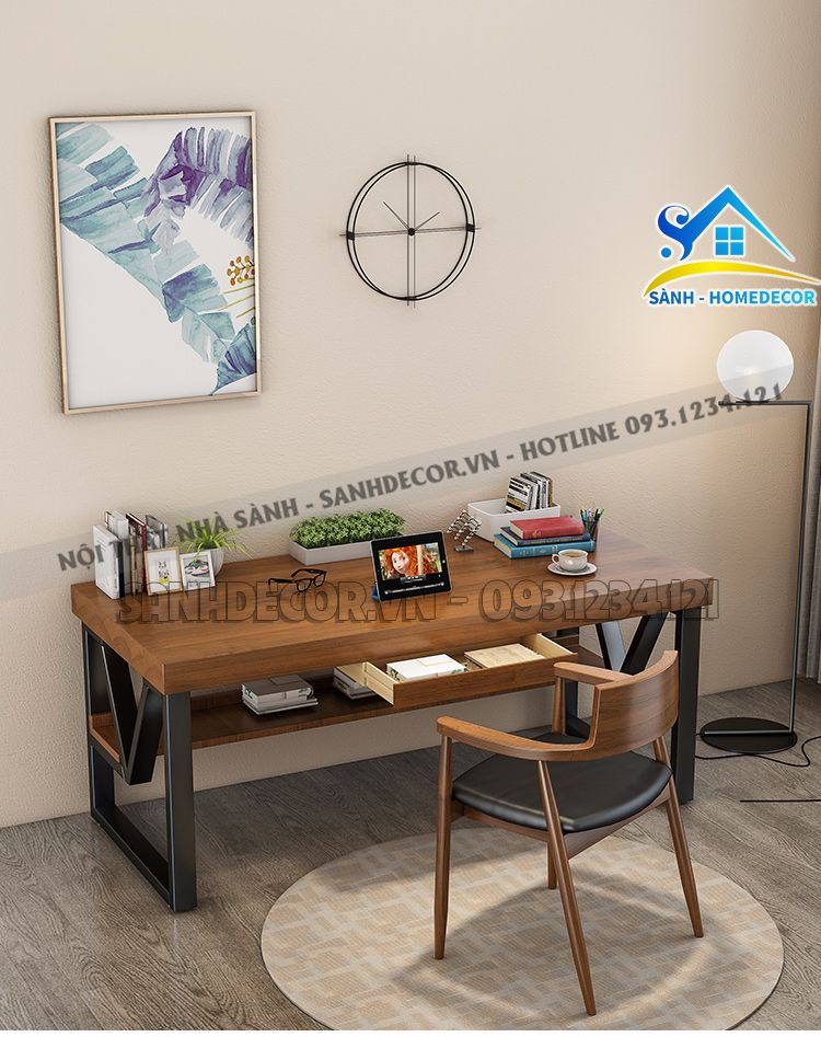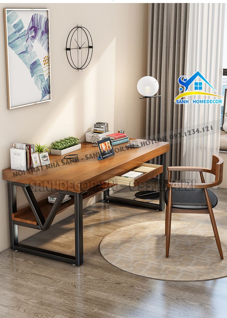 | Chất liệu | Gỗ công nghiệp bề mặt phủ melamin chống thấm và trầy; chân sắt |
