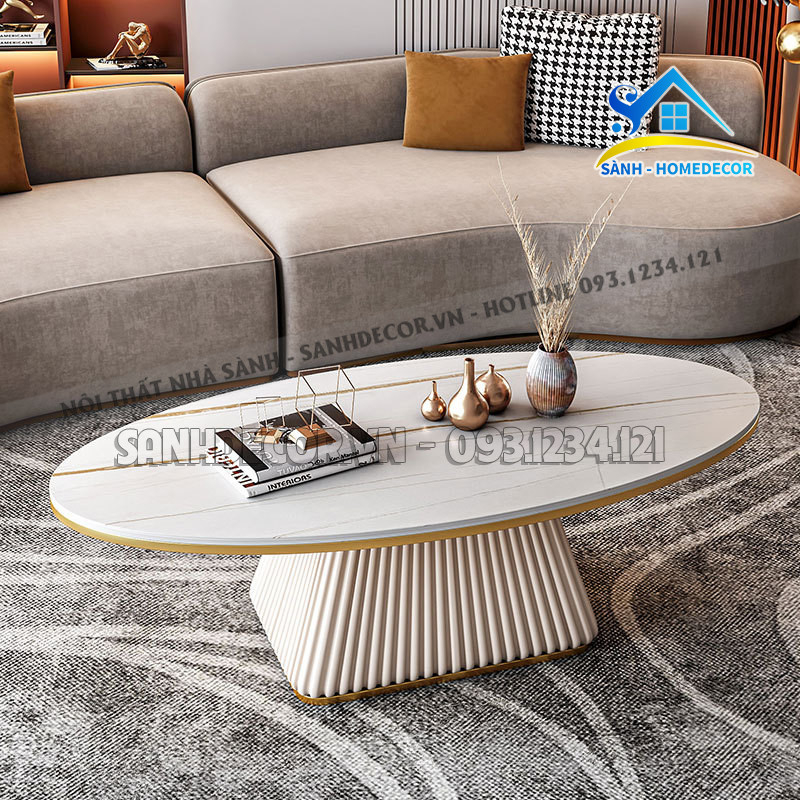 Bàn Trà Phòng Khách Oval Mặt Đá Cao Cấp - Bt59