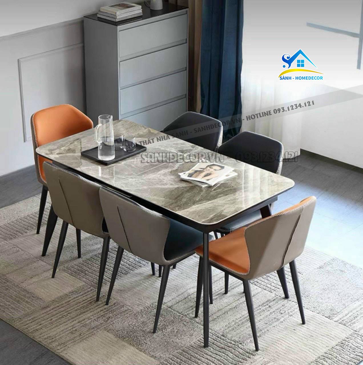 Bộ Bàn Ăn 4 - 6 Ghế Mặt Đá Cao Cấp - Ba70