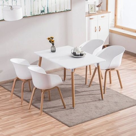 Chất liệuBàn gỗ MDF sơn PU, chân gỗ tự nhiên, ghế nhựa ABS, chân gỗ tự nhiên