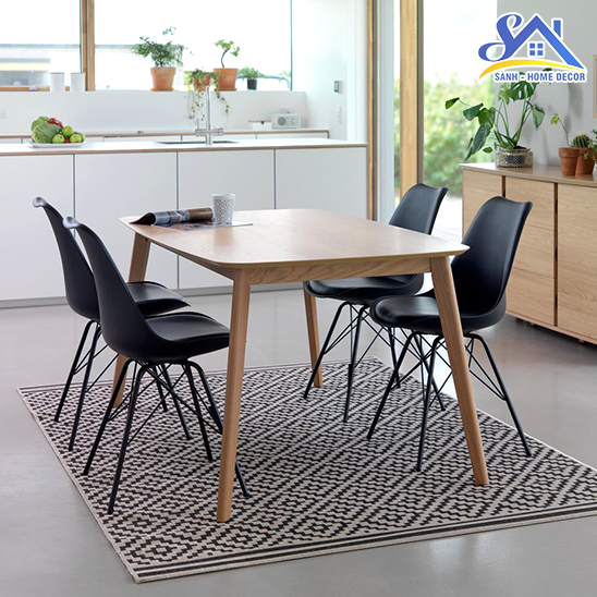 Bàn ăn gỗ cao su tự nhiên có vẻ ngoài đơn giản nhưng đủ rộng để bày biện la liệt những món ăn hấp dẫn chắc chắn sẽ khiến bữa cơm gia đình thêm phần thú vị và “ngon” hơn. Chỉ cần đặt chúng vào một góc vừa vặn trong phòng bếp nhà bạn mà chẳng cần phối kết thêm quá nhiều đồ trang trí, bởi bộ bàn ăn này vốn đã là một điểm nhấn thú vị khiến phòng ăn gia đình trở nên tinh tế hơn.