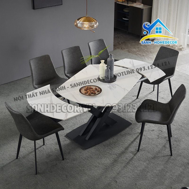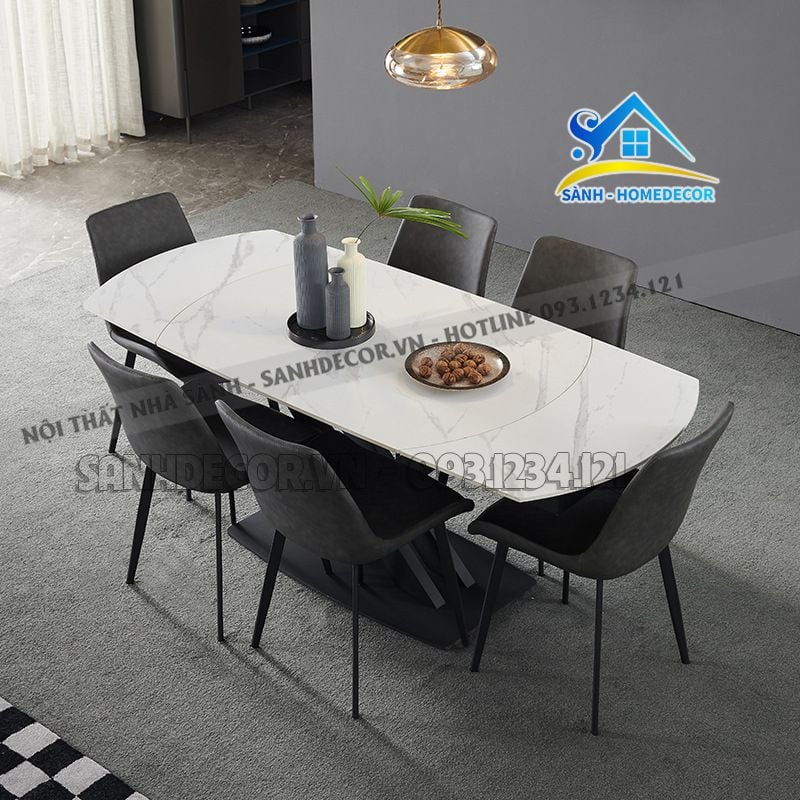 Bộ Bàn Ăn Thông Minh Mặt Đá 6 Ghế Cao Cấp - Ba94