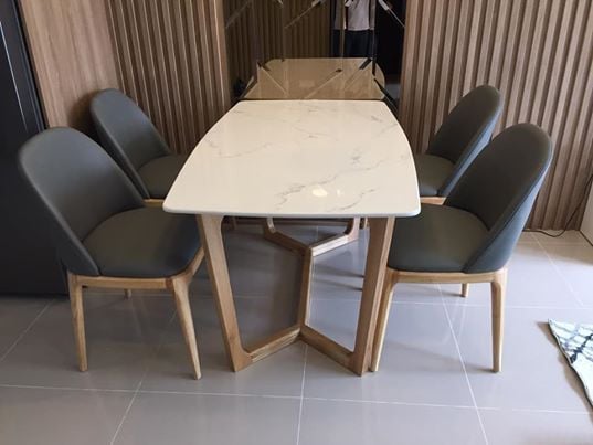 Bộ Bàn Ăn Mặt Đá Concorde 4 Ghế Chân Gỗ - Ba25