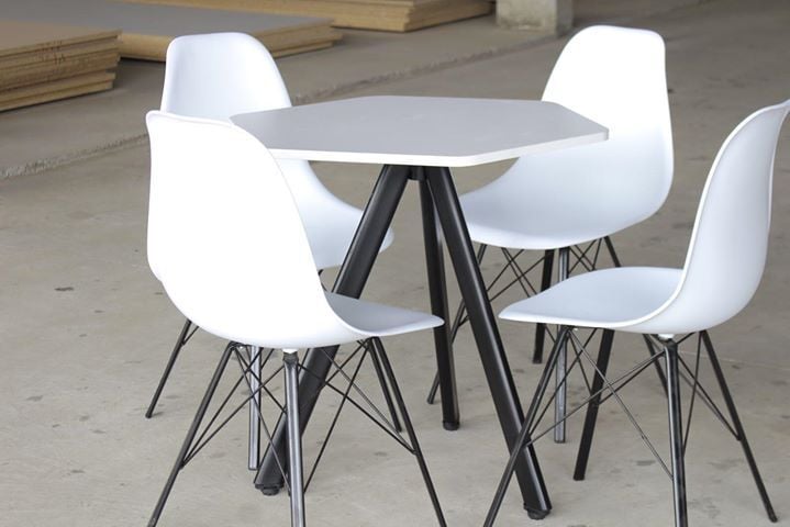 - Bàn ăn gỗ MDF, phủ sơn PU 2K, chân sắt sơn tĩnh điện chống gỉ