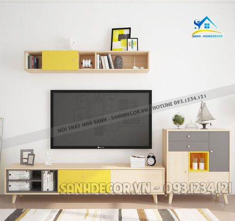 | Kích thước | 1. Kệ tivi L160XW40XH50 cm 2. Bàn trà: L120xW60XH45 cm 3. Tủ trang trí L80XW40XH90 cm 4. Kệ treo tường L160XW25XH25 |