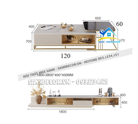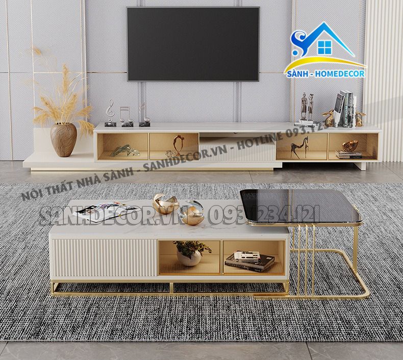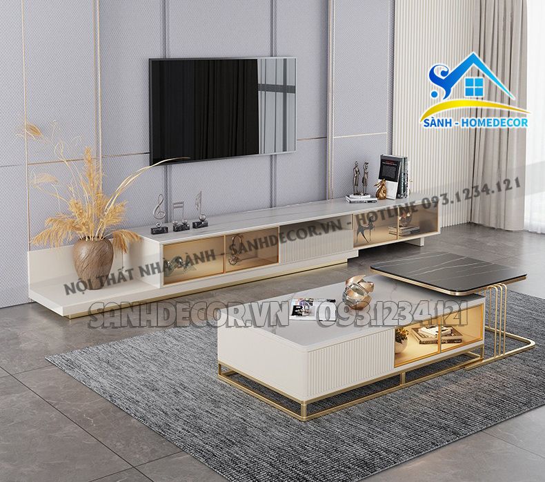 | Kích thước | 1. Kệ tivi: L240XW40XH40 cm 2. Bàn trà mặt kính: L65XW60XH47 cm 3. Bàn mặt đá: L120XW60XH40 cm |