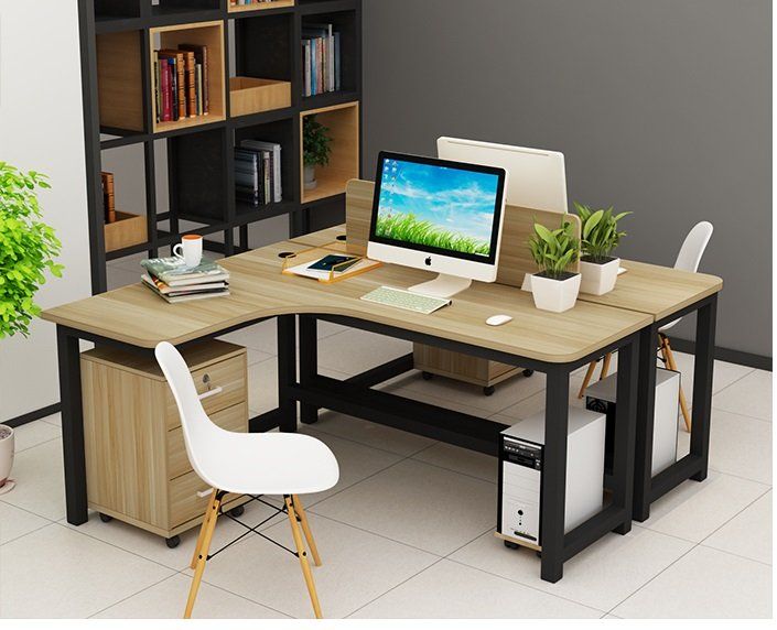 - Kiểu dáng hiện đại năng độn, mặt bàn bo tròn lượn hình chữ L về phía người ngồi,độ dày mặt bàn 25mm