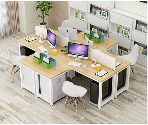 - Kiểu dáng hiện đại năng độn, mặt bàn bo tròn lượn hình chữ L về phía người ngồi,độ dày mặt bàn 25mm