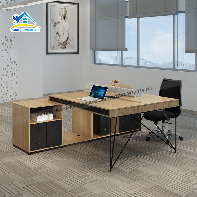 Cụm Bàn Văn Phòng 2 Chỗ Liền Kệ Tủ -Bvp05