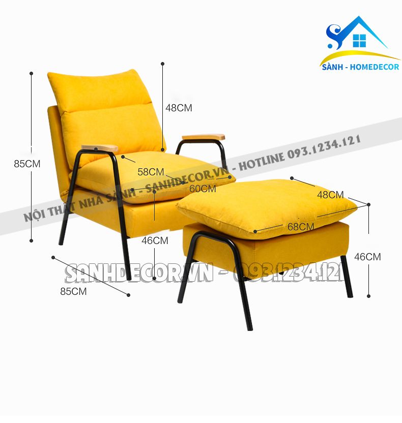 Ghế sofa thư giãn kèm đôn, chân sắt đen SGTG06
