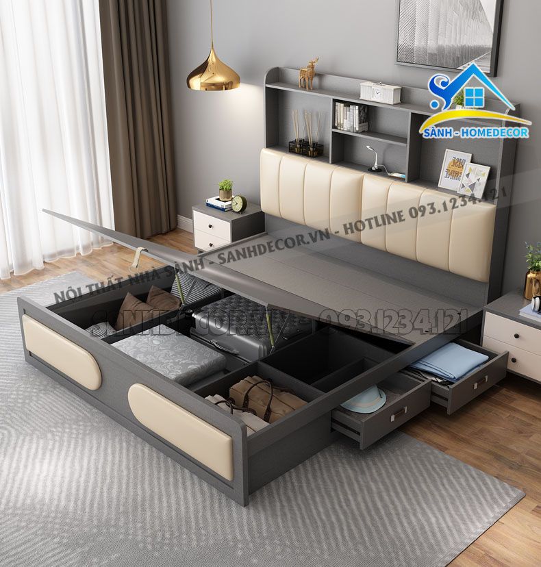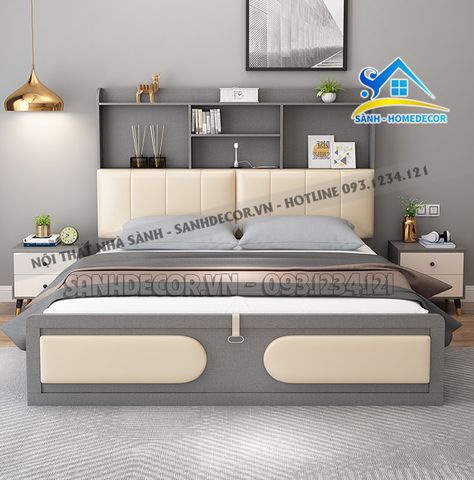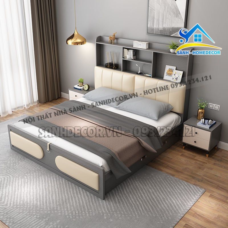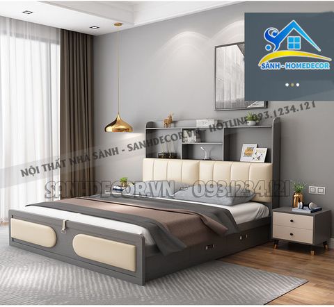 Giường Ngủ Bọc Nệm Có Kệ Đầu Giường Đa Năng - Sg102