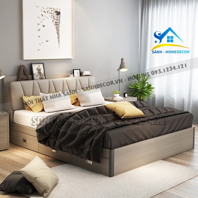 Giường Ngủ Bọc Nệm Có Ngăn Kéo Đa Năng - Sg88