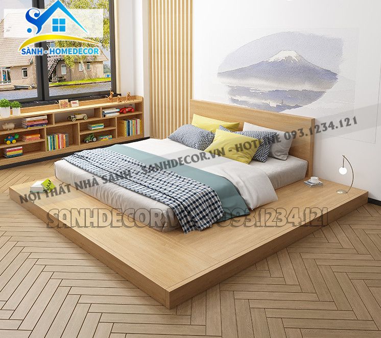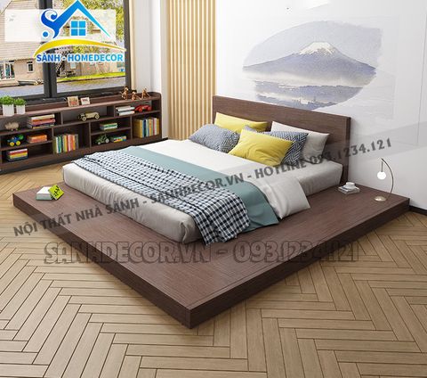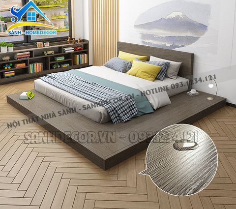 Giường: L250 x W260 cm - bệt gỗ cao 10cm