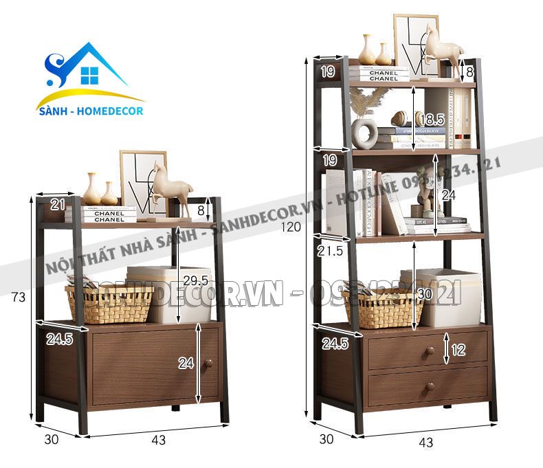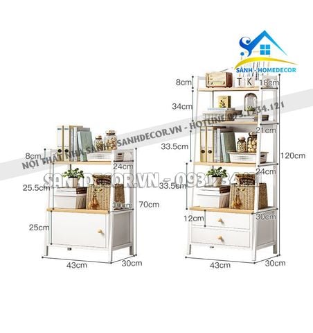 | Kích thước | 1. Kệ 1 tầng - L43XW30XH70 cm 2. Kệ 3 tầng - L43XW30X120 cm (Chi tiết như hình) |