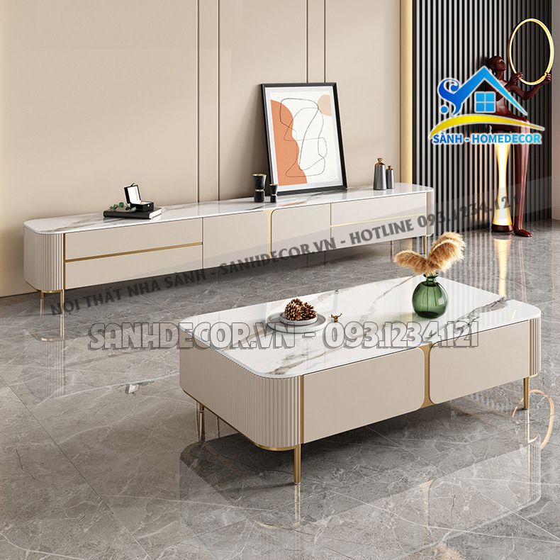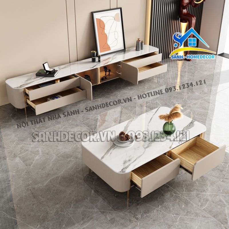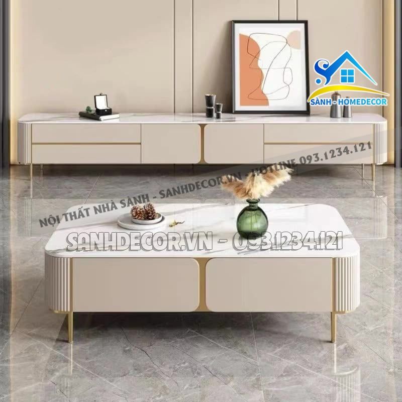 Set Kệ Tivi Và Bàn Trà Gỗ Sơn 2K Cao Cấp - Setpk74