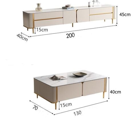 | Kích thước | 1. Kệ tivi: L200XW40XH45 cm 2. Bàn trà mặt đá: L130XW70XH40 cm |