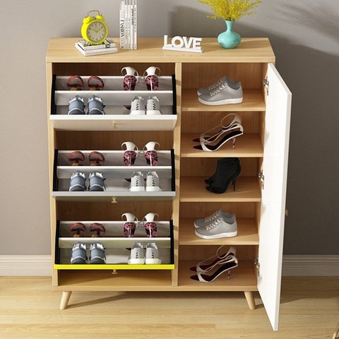 Với thiết kế đường nét tinh tế, màu sắc nhã nhặn, tủ có 3 hộc để bạn thoải mái chứa giày dép, ngoài ra tủ còn được thiết kế thêm ngăn tủ đứng dùng để nón bảo hiểm hay vật dụng khác.
