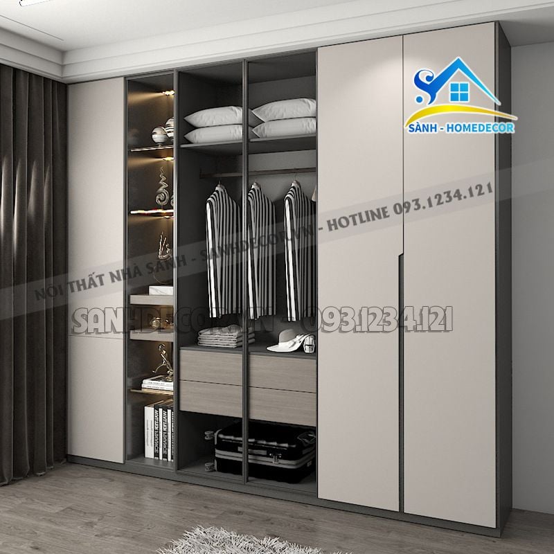 | Chất liệu | Gỗ CN phủ melamine cao cấp thương hiệu An Cường, Mộc Phát, Mộc Hoàng Gia; cánh kính cường lực |