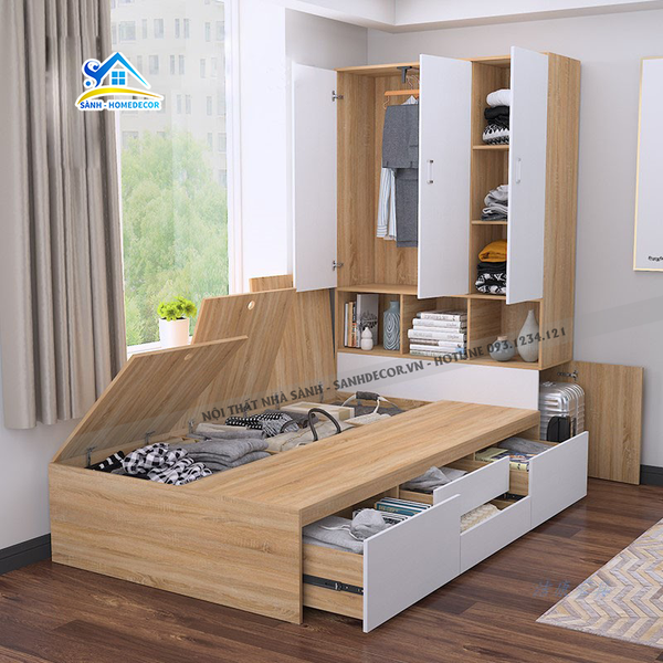 THÔNG TIN SẢN PHẨM:SET GIƯỜNG KẾT HỢP TỦ QUẦN ÁO HIỆN ĐẠI-SG22
