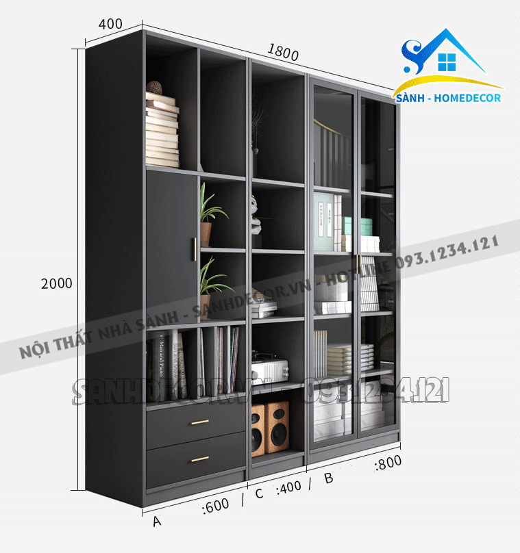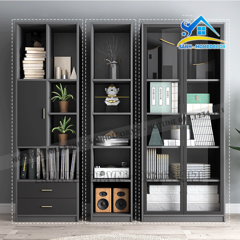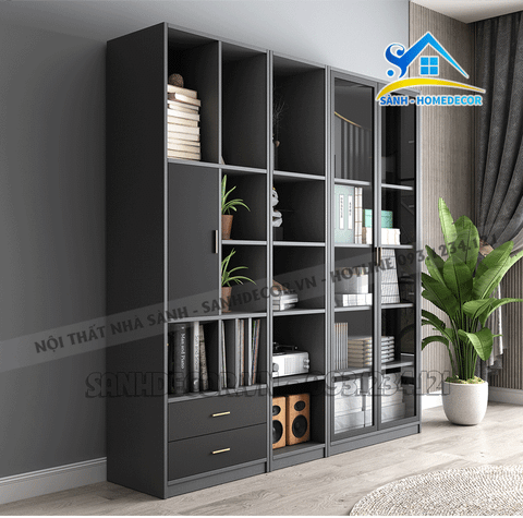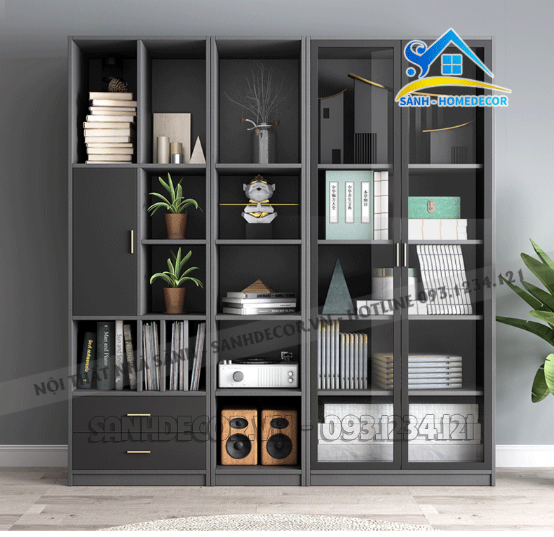 Tủ Sách Trang Trí Xám Đen Hiện Đại - Ttt16
